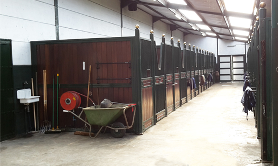 Onze zeer rustig gelegen accommodatie is voorzien van 23 ruime boxen en een loopstal, verdeeld in 2 gedeeltes. Ingericht dat zowel een merrie met veulen, als een 2,5 jarige onbeleerde hengst als een Grand Prix paard er zich veilig en thuis voelt. Degelijk omheinde paddocks, weides als ook een binnenbaan, stapmolen en poetsplaatsen zorgen dat we van alle gemakken voorzien zijn!